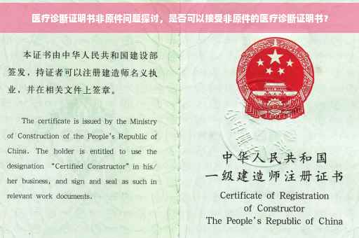 摘要:,,本文探讨了医疗诊断证明书非原件的问题。针对医疗诊断证明书是否为原件的问题,本文指出在某些情况下,非原件的医疗诊断证明书也可以被接受和使用。为了确保证明书的真实性和有效性,建议患者在获取证明书时尽可能获取原件,并注意核实证明书的签发机构及医生资质。医疗机构和相关部门也应加强管理和规范,确保医疗诊断证明书的真实、准确、合法。