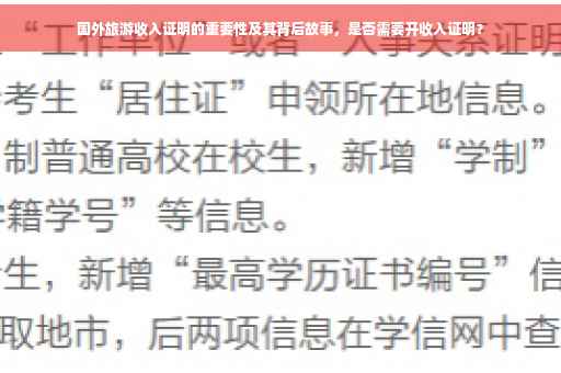 随着全球化的推进和人们生活水平的提高,越来越多的人开始热衷于出国旅游,在筹备国外旅行时,许多旅行者可能会遇到一些意想不到的要求,其中之一便是需要提供收入证明,为什么国外旅游需要开收入证明?这背后又隐藏着怎样的原因呢?本文将为您揭开这一话题的神秘面纱。