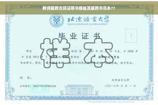 摘要:,,本文提供了一个教师解聘合同证明书的模板,作为教师解聘书的范本。该模板内容涵盖了教师解聘的相关信息,包括被解聘教师的姓名、职务、解聘原因、解聘日期等必要元素。此模板的使用可以帮助学校或教育机构规范解聘流程,确保双方在解聘过程中权益得到保障。