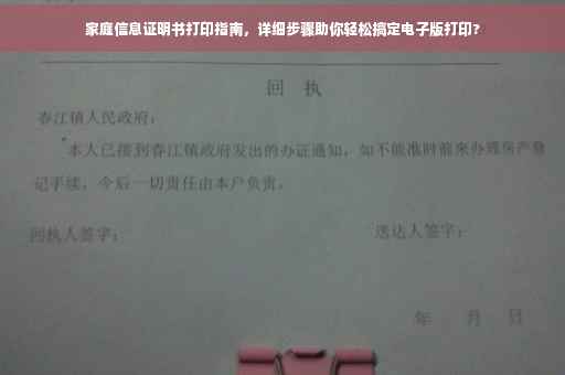 在现代社会,随着人们对个人信息安全的关注度不断提高,家庭信息证明书逐渐成为一项重要的文件需求,无论是办理银行业务、申请学校还是其他需要证明家庭成员关系的场合,一份完整的家庭信息证明书都能为我们提供极大的便利,本文将详细介绍如何打印家庭信息证明书,帮助大家轻松完成这项任务。