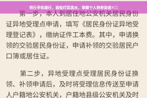 随着移动互联网的发展,银行业务越来越便捷化,人们不再需要亲自前往银行柜台办理业务,招商银行推出的手机打印银行流水功能,更是为广大客户带来了极大的便利,本文将详细介绍如何通过招行手机App轻松打印银行流水,让您随时掌握个人财务动态。