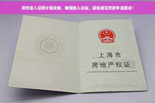 在申请房贷的过程中,收入证明是非常重要的一环,银行或其他金融机构主要依据收入证明来评估你的还款能力和信用状况,为了确保你的收入达标,了解如何计算收入证明以符合房贷申请要求至关重要,本文将为你详细介绍房贷收入证明的计算方法,并提供一些建议和注意事项。