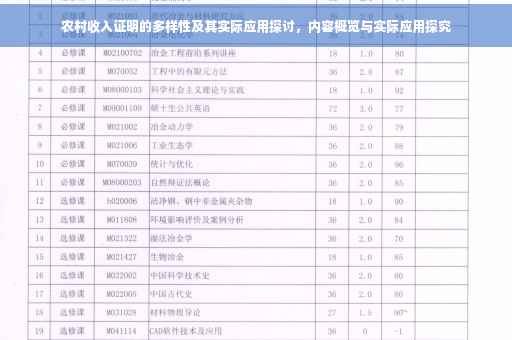摘要:,,本文探讨了农村收入证明的多样性和实际应用。农村收入证明涵盖了多种内容,包括农业收入、打工收入、经营收入等。这些证明对于农民申请贷款、享受社会福利、参与市场经济活动等方面具有重要意义。本文介绍了农村收入证明的主要内容,并分析了其在实际应用中的作用和存在的问题,以期促进农村经济的持续发展。