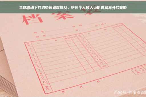 随着全球化的不断深入,跨国生活与工作已成为越来越多人的选择,护照作为国际旅行的必备证件,在现代社会中扮演着举足轻重的角色,而在跨国生活中,个人收入证明同样显得至关重要,无论是求职、申请贷款还是办理其他事务,护照和个人收入证明都是不可或缺的关键文件,本文将深入探讨护照个人收入证明的重要性、所面临的挑战及解决方案。