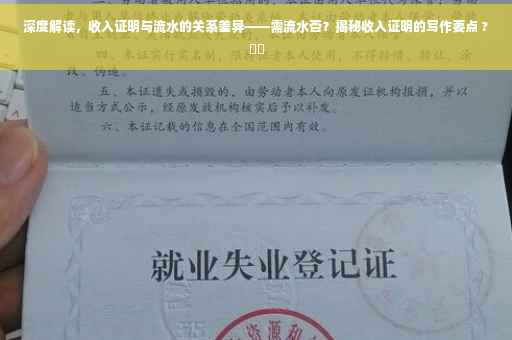 本文将详细探讨收入证明与流水之间的关系,分析两者在财务审核中的不同作用,并解答读者关于“有收入证明是否需要流水”的疑惑,文章首先介绍收入证明和流水的概念,然后阐述两者的重要性及在特定场合的应用,接着分析两者的差异,最后得出结论。