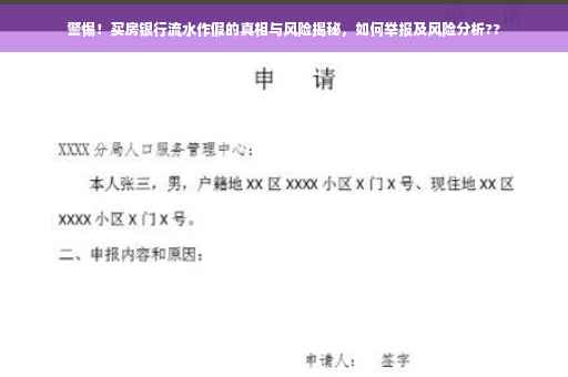 摘要:买房银行流水作假是一种违法行为,存在严重的风险。一些人为了贷款购房,采取伪造银行流水等手段欺骗银行,这不仅可能导致贷款被拒绝,还可能涉及信用记录受损甚至法律纠纷。本文揭露了银行流水作假的真相,并提醒公众警惕相关风险。提供举报途径,鼓励公众对银行流水作假行为进行举报,维护金融秩序和公平正义。
