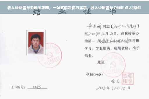 随着社会的快速发展,越来越多的人开始关注个人经济收入证明的重要性,无论是办理贷款、申请信用卡,还是求职入职等场合,收入证明往往成为必要的证明材料,很多人在需要办理收入证明盖章时,却不清楚具体的办理流程和途径,本文将为你详细介绍收入证明盖章的办理方法,让你轻松找到办理地点,顺利完成盖章。