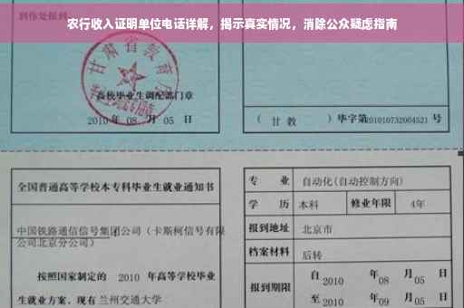 摘要:关于农行收入证明中的单位电话填写问题,本文旨在揭示真实情况并消除公众疑虑。在填写农行收入证明时,单位电话是重要信息,应准确填写以确保信息的真实性和有效性。具体填写方式可咨询所在单位相关部门负责人,以确保电话的准确性和可靠性。正确填写单位电话有助于消除公众疑虑,提高收入证明的可信度。