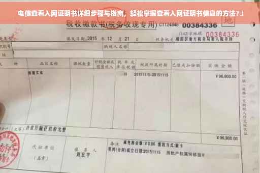 摘要:本文将详细介绍电信查看入网证明书的步骤和指南。通过简单的操作,用户可以轻松获取入网证明书信息。文章将包括电信查看入网证明书的详细步骤,以及相关的操作指南,以帮助用户顺利完成操作。