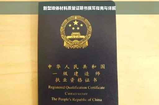 摘要:本文将详细介绍新型墙体材料质量证明书的编写方式。内容包括证明书的格式、内容要点以及需要注意的事项等。新型墙体材料质量证明书是评估材料质量的重要依据,本文旨在帮助读者了解如何撰写规范、准确的质量证明书,以确保新型墙体材料的质量可靠。