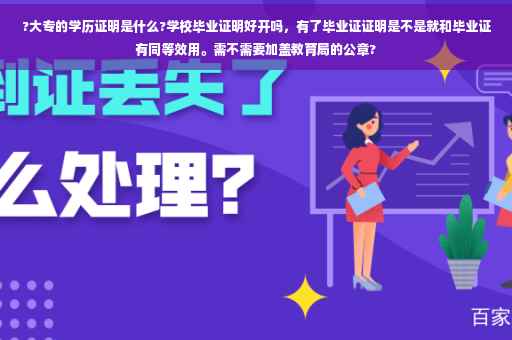 需要去市教育局盖章,证明格式如下: 按照省教育厅规定,高中毕业证丢失、损坏一律不予补办,不能补发,只发学历证明。 如需毕业信息等相关证明,可联系就读的高中学校给予开具。向毕业学校提出学历证明的申请,其与毕业证书有同等效用。证明的书面申请必须有市教育局的公章。
