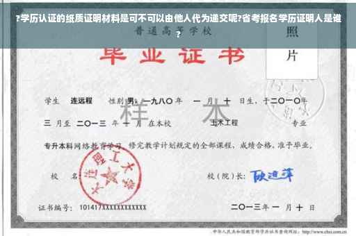 是可以由他人代理递交的,但是需要申请者本人到中国留学网认证专栏下载《代理递交认证申请材料委托书》和《授权声明》,填写并亲笔签名后交给代办人。代办人在代办时要出示自己的身份证和申请认证所需材料。需要注意的是,一位代理人在一年内(自代办之日起)只能代理递交一位认证申请者的申请材料。当然最好还是申请者本人亲自到留服中心或验证点递交认证材料比较好。