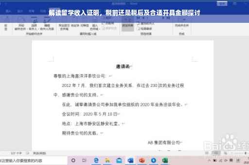在探讨留学收入证明应填写税前还是税后收入之前,我们首先需要明确税前和税后的概念,税前收入指的是在缴纳个人所得税之前的收入总额,而税后收入则是缴纳个人所得税后的实际收入,在开具收入证明时,通常会有明确的标注,表明是税前还是税后的收入。