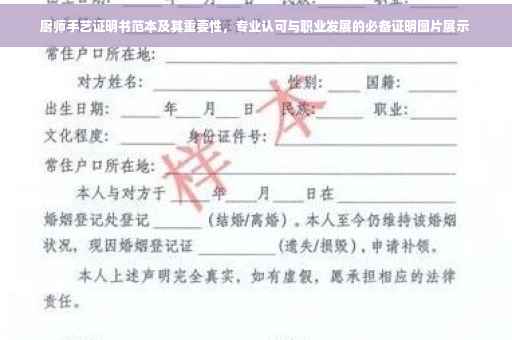 随着社会的不断发展,餐饮业日益繁荣,厨师的职业技能越来越受到人们的关注和重视,在这个竞争激烈的行业中,一份厨师手艺证明书显得尤为重要,本文将为大家介绍厨师手艺证明书范本图及其相关内容,帮助大家了解这一证书的重要性和实际应用。