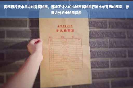 银行流水单作为个人和企业经济活动的重要记录,其背后隐藏着许多细节和秘密,通过深入了解银行流水单的秘密,我们可以更准确地掌握资金状况,更好地管理和使用这一财务工具,希望本文能为你揭开银行流水单的神秘面纱,让你更深入地了解这一重要财务工具的重要性。
