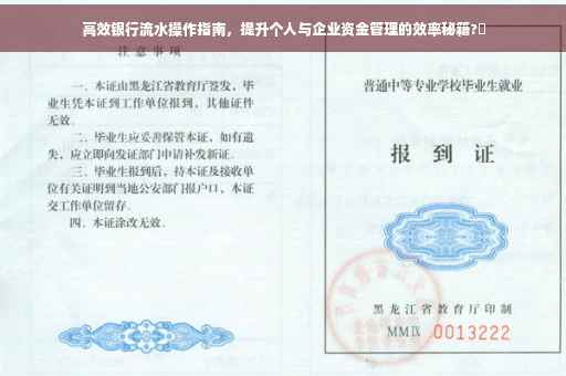 摘要:,,通过有效操作银行流水,个人和企业可以提升资金管理的效率。具体操作包括:清晰记录每笔交易,分类管理不同账户,定期核对账目,利用银行提供的线上服务工具进行自动化管理,以及保持良好的银行关系获取专业建议。这些措施有助于实现银行流水的有效证明,提高资金使用效率,优化个人和企业的财务管理。