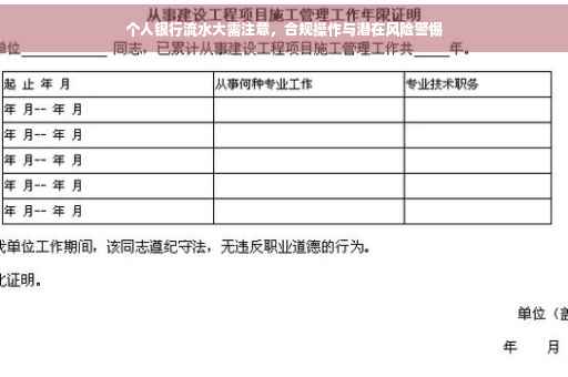(3)信用风险:如果个人银行流水涉及虚假交易或欺诈行为,可能会导致信用受损,影响个人信用记录。