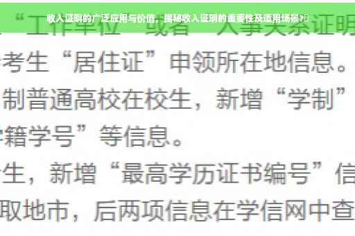 在现代社会中,随着经济的发展和就业市场的繁荣,个人收入证明逐渐成为我们生活中不可或缺的一部分,无论是办理贷款、申请信用卡,还是租房、签证申请等场合,收入证明都扮演着重要的角色,本文将详细介绍哪里能用到收入证明,并阐述其重要性。