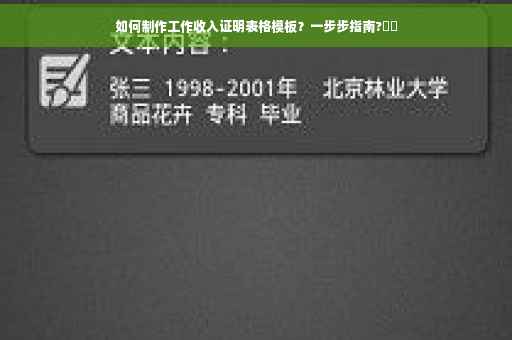 摘要:本文将介绍如何制定工作收入证明表格模板。通过明确表格结构、填写必要信息点如公司名称、部门、职位、入职时间、薪资等,以及注意事项如确保信息真实准确、格式规范等,帮助用户快速有效地完成工作收入证明表格的制作。该模板可用于个人申请贷款、租房等场合,具有重要的实用性和参考价值。