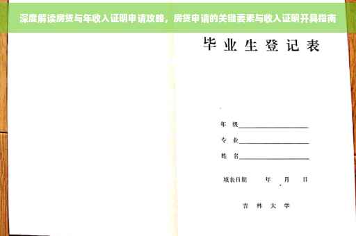 摘要:房贷申请过程中,年收入证明是关键要素之一。本文将深度解读房贷和年收入证明的重要性,并介绍如何正确开具这两项证明。通过本文的指导,读者将了解如何准备充分的材料,确保顺利申请房贷,避免不必要的麻烦。本文旨在帮助读者更好地了解房贷申请流程,顺利获得贷款批准。
