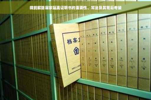 提前解除居家隔离并非随意而为,必须制定严格的审核标准,这包括制定明确的解除隔离条件、审核流程等,对于符合解除隔离条件的居民,要发放解除居家隔离证明书,以证明其已解除隔离状态。