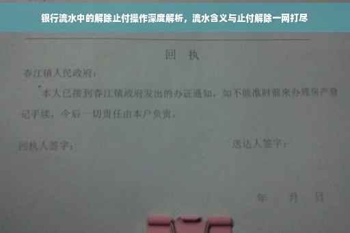 “解除止付”和“银行流水”在银行业务中占据重要地位,特别是在解除止付的过程中,银行流水的作用至关重要,客户应当了解这两个概念的含义和作用,并在实际操作中注意相关事项,以保护自己的资金安全和合法权益。