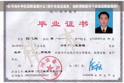 按照省教育厅规定,高中毕业证丢失、损坏一律不予补办,不能补发,只发学历证明。如需毕业信息等相关证明,可联系就读的高中学校给予开具。向毕业学校提出学历证明的申请,其与毕业证书有同等效用。