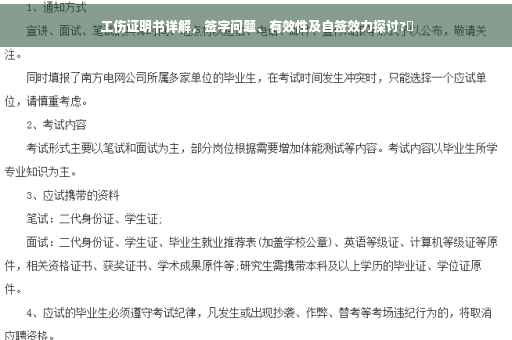 摘要:本文将详细解析工伤证明书中的签字问题,包括工伤证明书是否可以自己签字以及签字的有效性。文章旨在为读者提供清晰的指导,帮助理解工伤证明书的签署要求和注意事项。