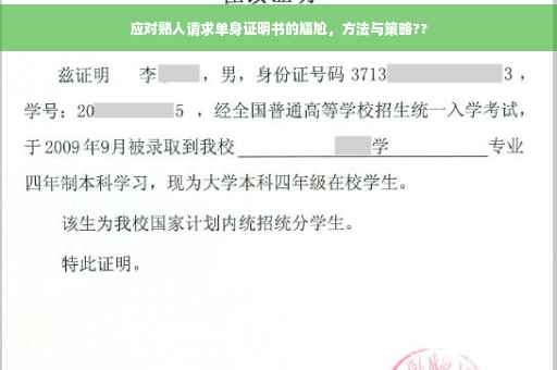 摘要:在面对熟人的尴尬请求,如要求提供单身证明书时,我们可以采取妥善的方式来应对。理解对方的需求并尽量以礼貌、诚恳的态度回应。若觉得不适,可委婉地表达个人感受,同时提供其他可能的解决方案。在处理这类情况时,务必尊重自己的隐私和感受,寻求平衡,避免不必要的误解和尴尬。