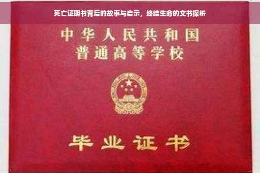 摘要:死亡证明书是一份宣告生命结束的文书,背后隐藏着许多故事和启示。它不仅记录了一个人的离世,更是对生命尊严的尊重和对逝者家属的安慰。通过死亡证明书,我们可以思考生命的脆弱和宝贵,以及珍惜当下的重要性。它也提醒我们关注社会对于死亡的态度和处理方式,以及推动相关政策和制度的完善。