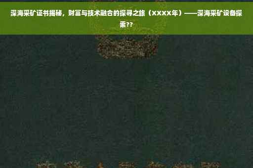 随着科技的飞速发展和全球资源需求的持续增长,深海采矿逐渐进入人们的视野,并成为了探索与研究的热点,在XXXX年,深海采矿技术取得了重大突破,推动了深海采矿活动的逐渐普及,本文将详细介绍在这一背景下的深海采矿证明书的相关内容,带您了解深海采矿的发展历程、技术要点、操作指南以及证书的重要性。