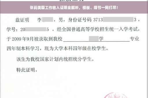 摘要:张莉的美国工作收入证明详解为我们提供了一个了解美国收入证明模板的机会。该模板是用于证明个人在美国工作期间的收入情况,包括薪资、奖金、津贴等。通过这份证明,可以清晰地了解张莉在美国的收入状况,包括收入构成和收入水平。这对于需要证明个人收入状况的人群具有一定的参考价值。