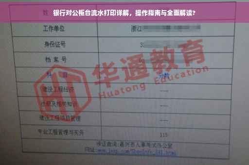 摘要:,,本文介绍了银行对公柜台打印流水的全面解读与操作指南。文章详细阐述了打印流水的流程,包括准备相关材料、前往银行柜台、提交申请、等待审核及打印等步骤。通过本文,读者可以了解如何正确、高效地打印银行对公柜台流水,以便更好地管理企业财务。