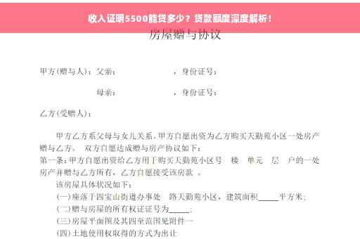 收入证明是贷款机构评估借款人还款能力的重要依据,收入越高,借款人获得的贷款额度也会相应增加,贷款额度并非完全由收入决定,还会受到征信记录、负债情况、贷款类型、还款期限和利率等多种因素的影响,仅凭收入证明5500元无法直接确定具体的可贷款额度,需要结合其他因素综合评估。
