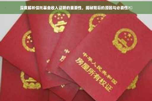 信托基金之所以需要收入证明,是为了确保合规、风险管理及提高投资成功率,作为投资者,应理解并遵守相关规定,提供真实的收入证明材料,以便更好地参与信托基金市场,实现资产的增值。
