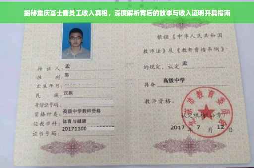 摘要:本文将揭示重庆富士康员工的真实收入情况,深度解析收入证明背后的故事。同时介绍如何开具重庆富士康的收入证明,帮助读者了解富士康员工的薪资真相,以及了解如何合法获取收入证明,解决相关疑问和困惑。正文将详细介绍收入的构成、影响因素和具体开具流程。