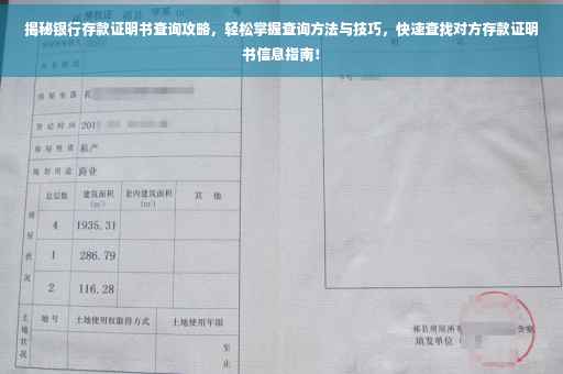 在现代社会,银行存款证明书已成为个人信用和资产证明的重要文件之一,有时候我们需要查询他人的存款证明书,无论是出于关心还是法律程序需要,本文将详细介绍如何查找对方存款证明书的方法与技巧,帮助您轻松应对各种情况。