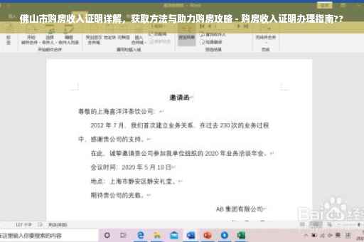 在佛山市购房过程中,收入证明是必不可少的一环,作为购房者,了解如何准备和提供有效的购房收入证明,有助于加快购房进程,避免不必要的麻烦,本文将详细介绍佛山市购房收入证明的相关知识,助您顺利购房,实现安居梦想。