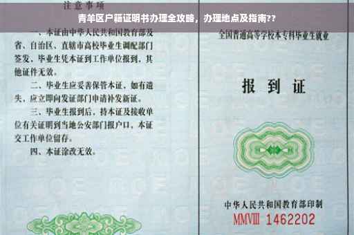 摘要:青羊区户籍证明书办理指南,告诉您如何轻松办理户籍证明书。想要知道青羊区的户籍证明书在哪里办理吗?办理流程简便快捷,只需前往指定地点提交相关材料,即可完成办理。如果您需要办理青羊区户籍证明书,请按照本指南操作,轻松解决您的需求。