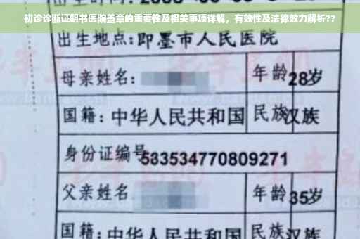 初诊诊断证明书是患者在首次就诊时,由医生根据患者病情、病史及体格检查等信息出具的诊断证明文件,医院盖章则代表医院对此诊断的认可和支持,初诊诊断证明书医院盖章的意义主要体现在以下几个方面:
