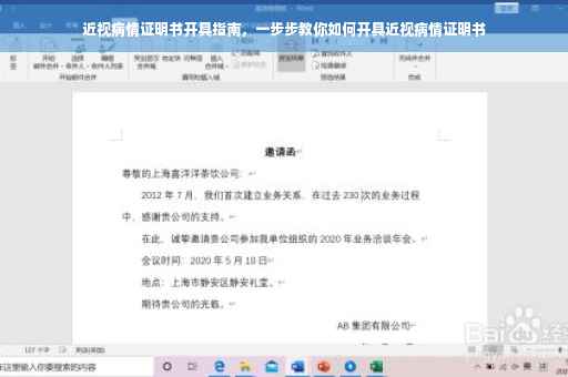 随着现代电子产品的普及,近视问题日益严重,越来越多的人需要开具近视病情证明书,本文将详细介绍近视病情证明书的开具流程、所需材料以及注意事项,帮助大家了解如何正确开具近视病情证明书。
