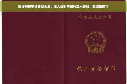 摘要:申请房贷时,房贷收入证明与银行流水是不可或缺的关键要素。本文将揭秘这两者的真相,指导读者如何查询银行流水,确保顺利申请房贷。通过本文,读者将了解到收入证明的重要性以及如何通过银行流水来验证收入状况,为成功申请房贷提供有力支持。