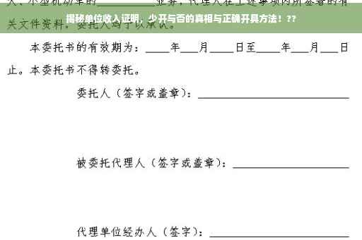 在当今社会,越来越多的人开始关注自己的收入证明问题,特别是在求职、贷款等方面,单位收入证明成为了重要的证明材料之一,很多人对于单位收入证明是否可以少开存在疑问,本文将为大家深入解析这一问题,带你了解背后的真相。