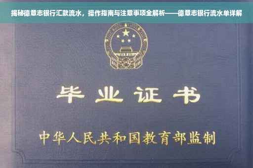 在当今全球化的时代,跨境汇款已成为日常生活中不可或缺的一部分,作为拥有悠久历史和全球影响力的金融机构之一,德意志银行在全球范围内拥有广泛的业务网络,本文将为您详细介绍德意志银行的汇款流水操作指南,帮助您顺利完成汇款并避免不必要的麻烦。