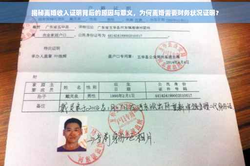 摘要:离婚需要提供收入证明,背后涉及到财产分割、抚养子女、赡养老人等实际问题。收入证明能够证明双方的经济状况,有助于确定财产分割比例和抚养费的支付能力,确保离婚后双方及子女的生计。收入证明还能避免一方隐瞒财产,确保离婚过程的公平透明。提供收入证明对于离婚过程具有重要意义。