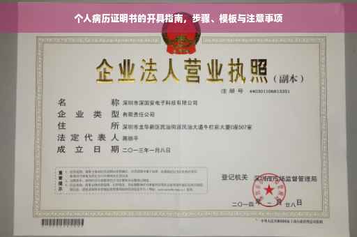 摘要:关于个人病历证明书的开具,需遵循详细步骤与注意事项。确保获取完整的病历资料,包括病史、诊断、治疗及用药情况等。前往正规医院开具证明,注意证明书中的信息必须真实、准确、完整。患者需携带有效身份证明,并在医生指导下选择合适的开具时机。证明书模板可参考医院提供的标准格式,确保内容规范。在开具过程中,还需注意保护患者隐私,避免信息泄露。