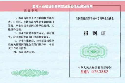 老年人乘机证明书是一种专为老年人设计的乘机证明文件,它的出现不仅体现了社会对老年人的深切关爱和尊重,更是航空安全制度的一次重要完善,此证明书一般包含个人信息、乘机日期、航班号及健康状况等内容,有助于航空公司对老年乘客进行更有效的管理和服务。