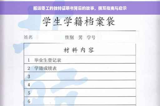 摘要:搬运零工是一份看似简单却充满故事的工作,背后隐藏着独特的证明书撰写方式。这篇摘要将带你了解搬运零工的职责和特点,以及编写搬运零工证明书时需要注意的关键要素。通过简洁明了的语言,我们将探讨这份工作的独特之处,以及证明书在记录这一职业经历时的重要性。