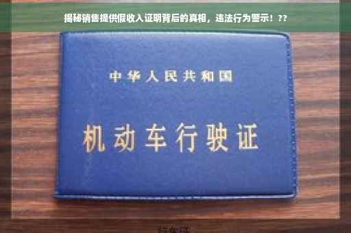 在当今社会,就业市场竞争日益激烈,一份稳定的收入证明往往成为许多人追求美好生活的重要支撑,一些不法销售人员却利用这一心理,提供假的收入证明,骗取消费者的信任,本文将揭示销售提供假的收入证明背后的真相,帮助大家提高警惕,避免陷入不法销售的陷阱。