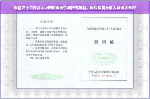 疫情之下,各行各业的工作模式经历了前所未有的变革,随着远程办公的普及,一份规范的工作收入证明变得尤为重要,本文将详细阐述疫情工作收入证明的重要性、格式及实际操作建议,并附上图片示例,以助大家更好地理解和操作。
